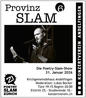 Weinland Mitreissend heiterer Provinz Slam Andelfingen - Einen heiteren, unbeschwerten Abend erlebten die Gäste des Provinz Slams. Der Konzertverein organisierte den Anlass bereits zum sechsten Mal.