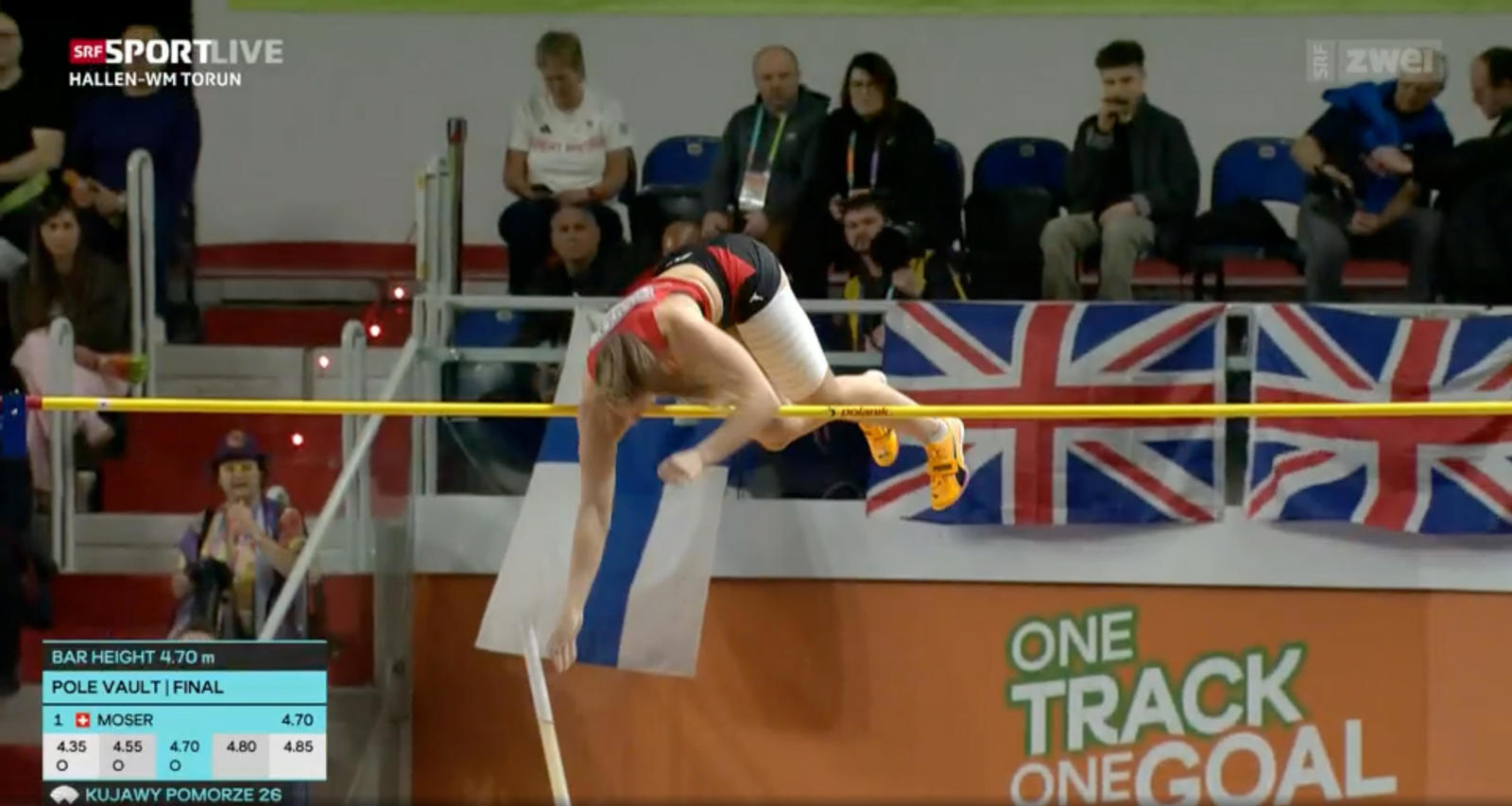Normalerweise werden an Leichtathletik-Weltmeisterschaften pro Disziplin drei Medaillen vergeben. An der Hallen-WM im polnischen Torun am Wochenende freuten sich aber gleich fünf Stabhochspringerinnen über Edelmetall. Hinter der Siegerin Molly Caudery (Grossbritannien, 4,85 Meter) und der zweitplatzierten Tina Sutej (Slowenien, 4,80 Meter) kamen sieben Athletinnen auf eine übersprungene Höhe von 4,70 Meter. Drei davon schafften dies bis dahin ohne Fehlversuch und teilten sich somit den Bronzeplatz: Amalie Svabikova (Tschechien), Imogen Ayris (Neuseeland) und Angelica Moser.