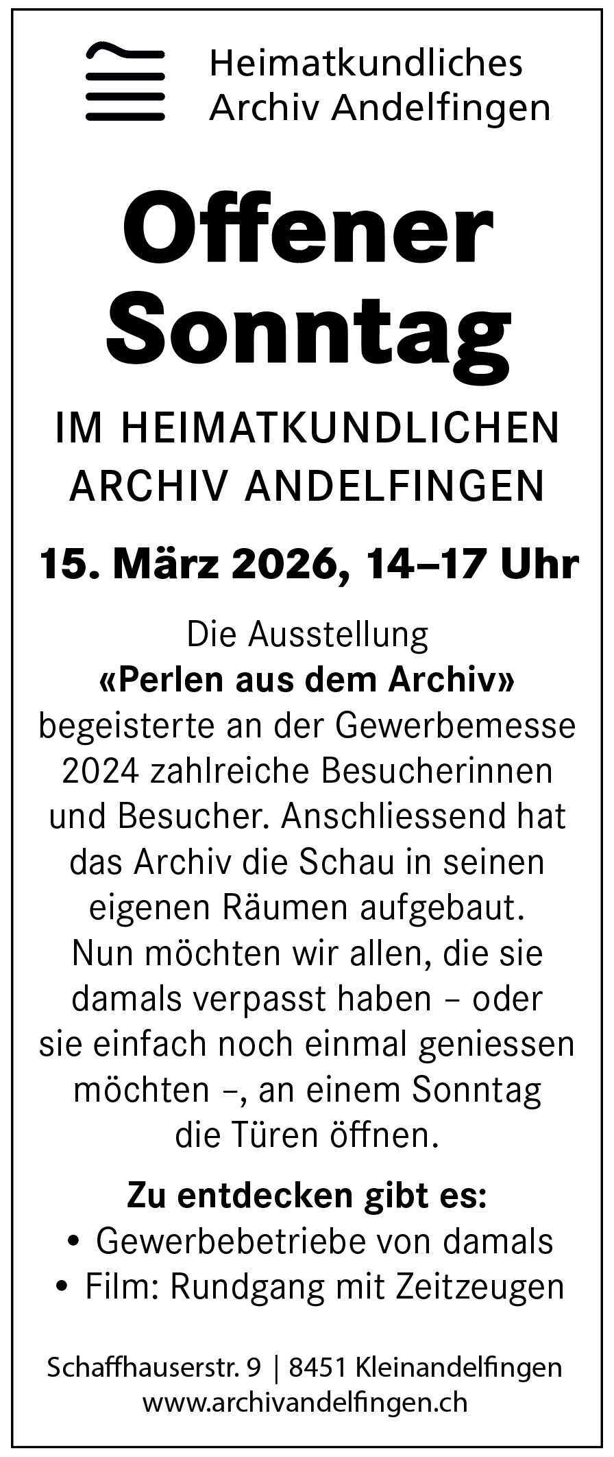 Offener Sonntag im Heimatkundlichen Archiv Andelfingen