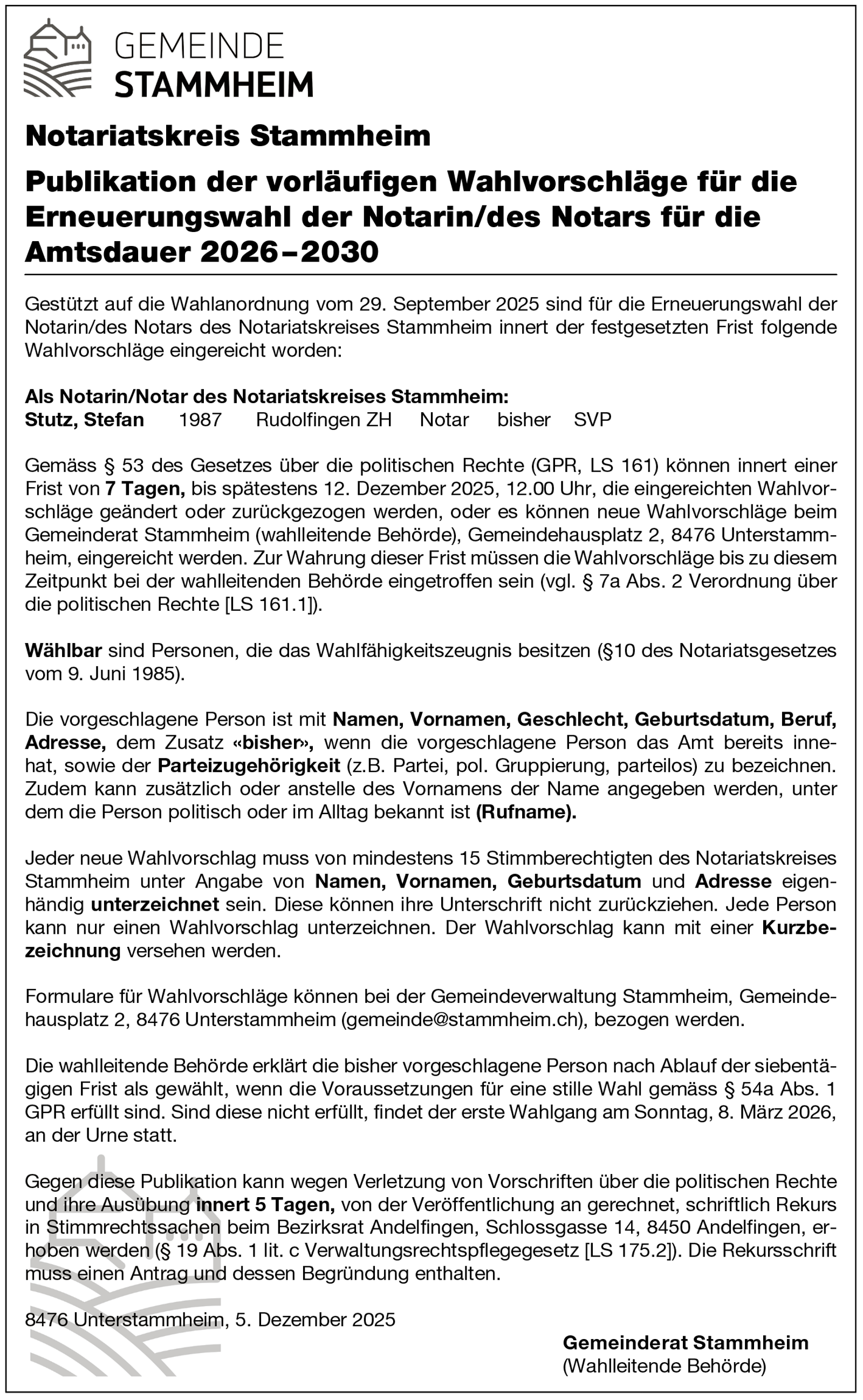 Gemeinderat Stammheim