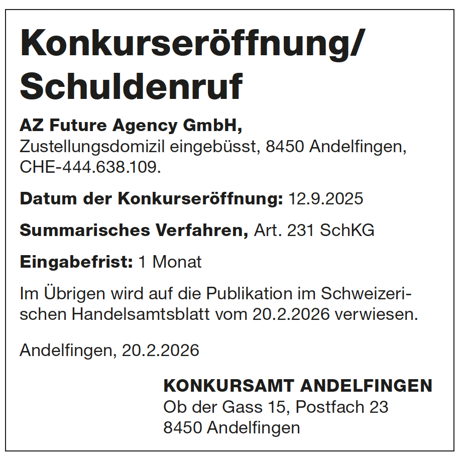 Konkurseröffnung/Schuldenruf